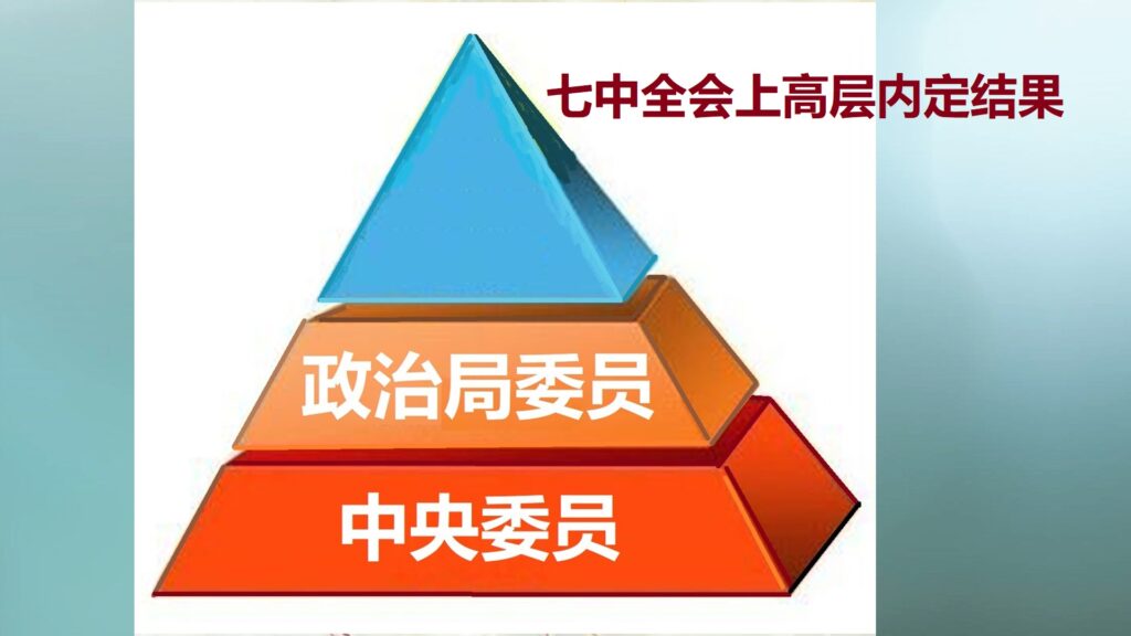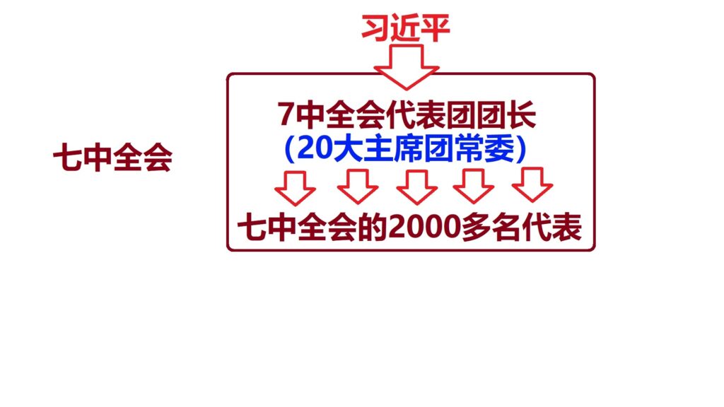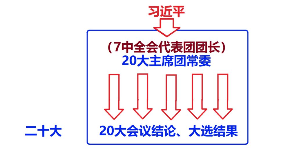 但是,对于那些中央委员来说,在这次19届7中全会上,20大最核心的这部分内容,估计将会完全明朗化,所有的谜底都将揭开。也就是说,等不到20大召开,参加这次会议的人就都清楚了20大具体的人事安排,谁是中央委员,谁是政治局委员,谁是常委。虽然说,这些人还需要两千多个代表选出,只不过,那只是一个形式。这两千多个代表只是投票的机器,直接操纵和控制这两千多个会议代表的是各个代表团的团长,这些人也都是20大主席团的常委,他们基本上都是习近平的亲信和嫡系,或者是积极投靠习近平的人,他们自然会执行习近平的旨意。也就是说,习近平通过他们控制所有的代表,来取得他想要的结果。各个代表团的团长都会参加7中全会,他们无疑是20大上关键性的人物。7中全会结束后,参加这次会议的那些关键人物会向下进行传达和安排,最终,把习近平的意图变成20大会议的正式结论,把习近平的人事安排变成20大选举的结果。