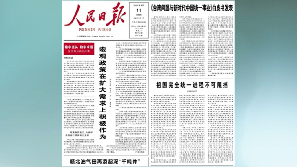 上个月,中共当局突然发表了《台湾问题与新时代中国统一事业》白皮书,这是中共当局时隔22年再次发布《台湾问题白皮书》,也是习近平上台10年来第一次发布《台湾问题白皮书》。白皮书宣称,我们比历史上任何时期都更接近、更有信心和能力实现中华民族伟大复兴的目标,也更接近、更有信心和能力实现祖国完全统一的目标。尤其是,在中共20大召开前夕,在习近平统治中国10年之后,突然推出《台湾问题白皮书》,显然意味着,在他那里,台湾问题的急迫性已经升级了。