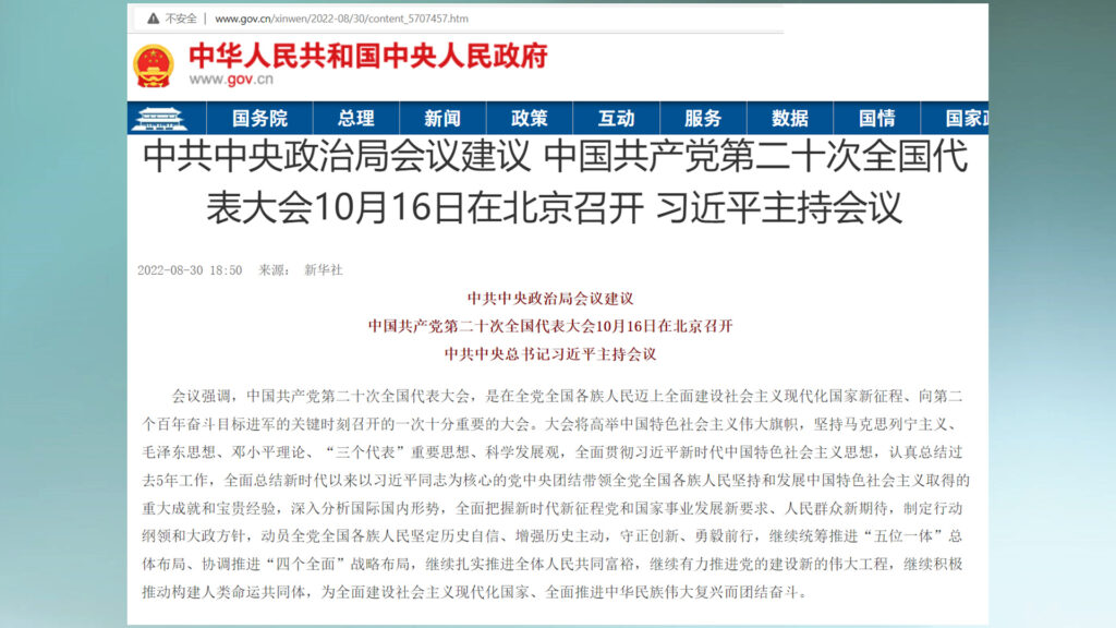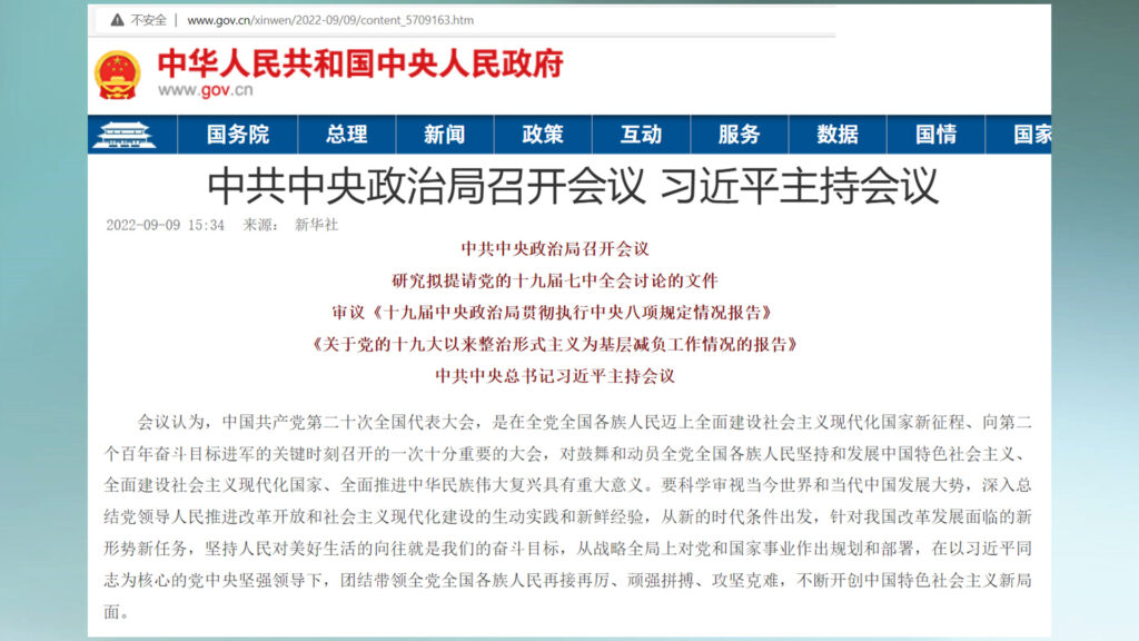 我们知道,在8月底的那次政治局会议上,已经对20大的主要任务做了说明,那就是全面总结新时代以来以习近平为核心的党中央团结带领全党全国各族人民取得的重大成就和宝贵经验,也就是替习近平歌功颂德。9月9日这次政治局会议,重点是确定20大的政治报告和党章修正草案。关于二十大的报告,这次会议特别提到,在以习近平为核心的党中央坚强领导下,团结带领全党全国各族人民再接再厉、顽强拼搏、攻坚克难,不断开创特色主义新局面,这实际上在确定20大报告的基调,也就是强调习近平的领导。就中共党章的修改,这次会议决定,要把二十大报告确立的重大理论观点和重大战略思想写入党章,使党章充分体现马克思主义中国化、时代化最新成果,充分体现十九大以来党中央提出的治国理政新理念、新思想、新战略,所谓马克思主义中国化、时代化最新成果其实就是指习近平思想,治国理政新理念、新思想、新战略更是来自习近平,也只能来自习近平。显而易见,20大就是习近平的加冕礼。如果说,20大报告是对习近平过去5年实现的超乎寻常的成就以及思想理论的总结,那么,20大通过的新党章,则是用习近平过去5年发明的重大理论观点和重大战略思想约束中共全党。如果说,20大是习近平的加冕礼,那么,为习近平修改党章就是加冕礼的重要部分,党章中提到的习近平的一切,就是中共给他的政治封号。