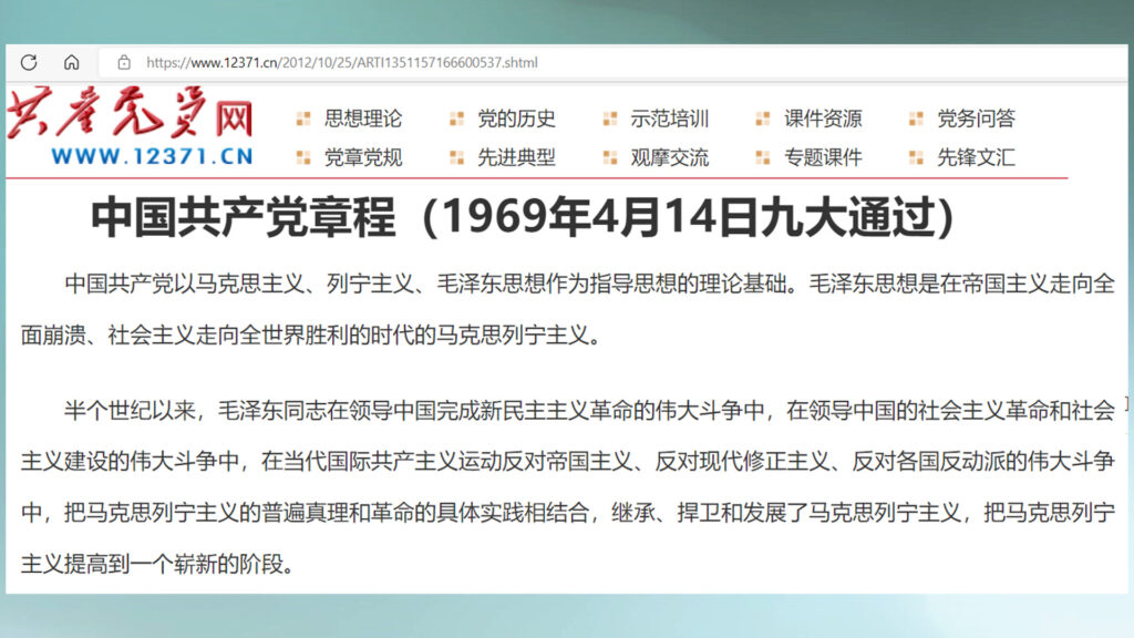 中共这些独裁者的心思,其实都差不太多。毛泽东的权力达到巅峰时刻的中共9大,对中共党章做了重大的修改。在总纲中便写道,中共以马列主义、毛泽东思想作为指导思想的理论基础。毛泽东思想是在帝国主义走向全面崩溃、社会主义走向全世界胜利的时代的马克思列宁主义。以及毛泽东继承、捍卫和发展了马克思列宁主义,把马克思列宁主义提高到一个崭新的阶段。由此,我们可以推断习近平20大推出的中共党章会是一个什么样子。