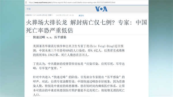 尽管当局对于疫情的严重程度一直避而不谈,但是,医院、殡仪馆流传出来的场景无不令人触目惊心。中国正在爆发的严重疫情已经引起了国际社会的高度关注,而中国疫情数据的不透明,以及中共当局对疫情的隐瞒,更是引起了国际社会极大的担心,正如3年前武汉爆发疫情时的情况,始于中国之事不一定会止于中国。