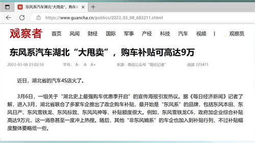这场燃油汽车促销价格战,始于湖北省,著名的东方汽车集团就在湖北省。汽车是湖北省第一大支柱产业,汽车的营销状况对湖北省的经济影响极为重大。3月初,湖北省开始对东风汽车集团旗下多个品牌、多款车型给予政企综合补贴,最高达9万元,一些车型几乎降价40%,降幅惊人。这样的情况此前还从未发生过,湖北省此举在汽车行业引起了巨大的震动。随后,全国主要汽车生产基地的政府和企业也匆忙跟进,如吉林一汽集团、上海大众汽车也都通过政企补贴,大幅降低销售价格,争夺市场。毕竟,汽车企业对那些省市的经济和财政都影响巨大,地方政府不敢等闲视之。到现在,已经有多个地方都加入了这场汽车价格战,似乎已经陷入无政府状态,形势相当严重。