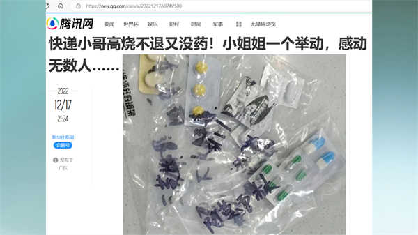 此外,国内的多个重要媒体上都流传着这样一个视频,快递小哥高烧不退又没药,小姐姐一个举动感动无数人。一个快递小哥高烧不退买不到感冒药和退烧药,非常幸运地得到了一个订货姐姐的帮助。只是,令人奇怪的是,这个小哥为什么不去医院呢?也许,这个小哥高烧无力去医院,也许,这个小哥根本就没有钱去医院看病。